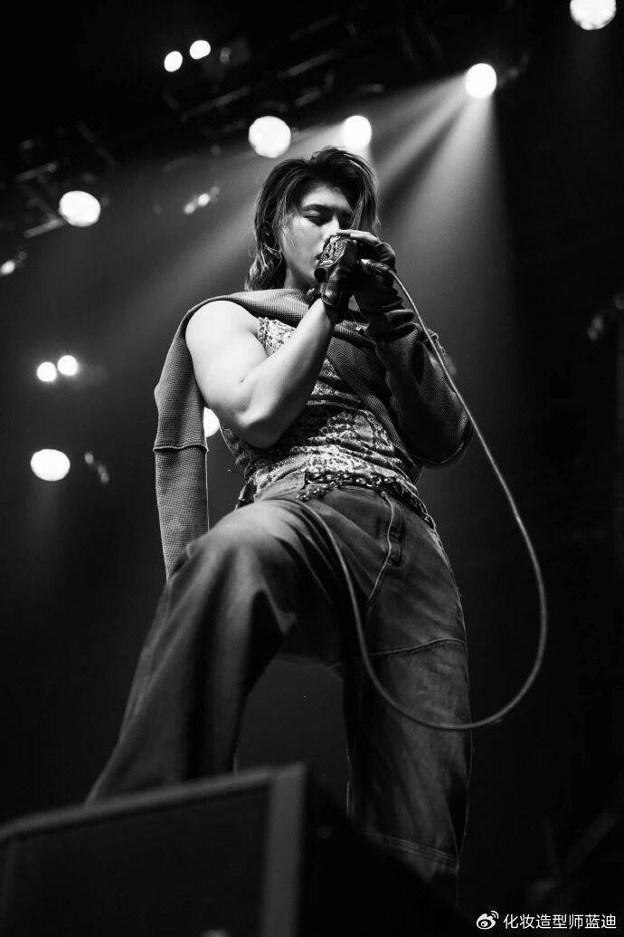 舞台上的他更是把“王者”两个字刻进DNA里。鱼眼镜头下的黑白剪影里,他单膝跪地和观众对视的瞬间,眼神里的锐利能穿透屏幕;广角镜头捕捉到的纵身跳跃,肌肉爆发力看得人心脏漏跳半拍。有外媒评价“他把华语音乐的舞台美学带到了新高度”,但粉丝们更在意的是:“哥哥弯腰唱歌时,背心勾勒的线条谁顶得住啊!”
